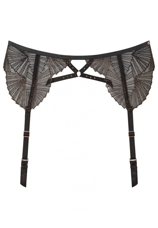 Pas do pończoch Captivate to idealne uzupełnienie kompletu z tej serii. Pas wykończono hafem z lurexem oraz czarnymi paseczkami. Tył zapinany na haftki z możliwością regulacji. Całość utrzymana w czarnej tonacji.