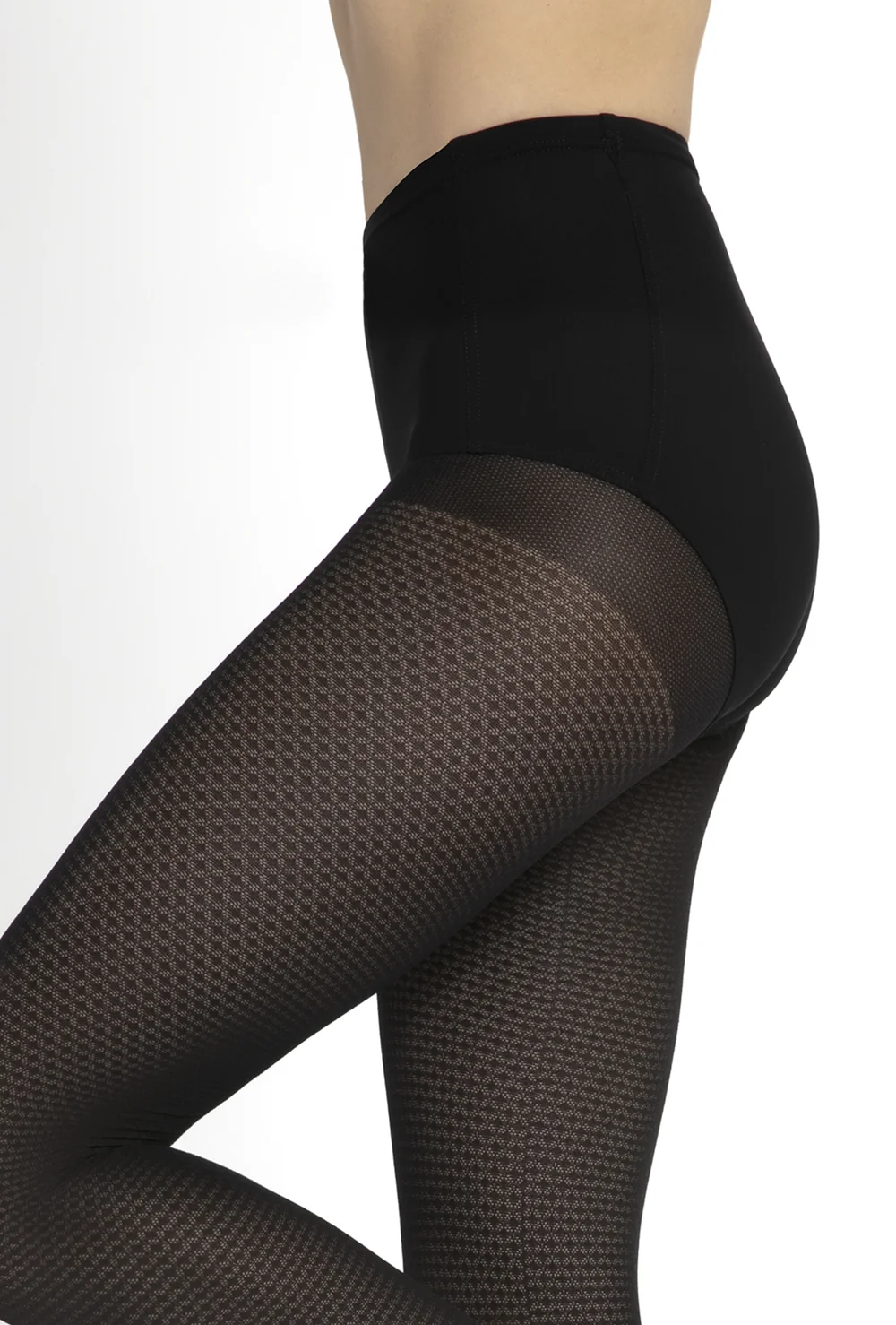 Rajstopy Lorien 13 występują w czarnym kolorze z modnym geometrycznym wzorem. Rajstopa matowa bardzo elastyczna, ładnie dopasowuje się do nogi. Rajstopy bez części majtkowej oraz bez wzmocnień na palcach. Idealna grubość 40Den. Sprawdzą się w wielu stylizacjach. Elegancki i ponadczasowy wzór.
