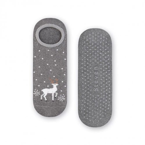 Stopki w kolorze szarym z wizerunkiem jelenia. Wykonane z wysokiej jakości bawełny. Ciepła i wygodna frotta.