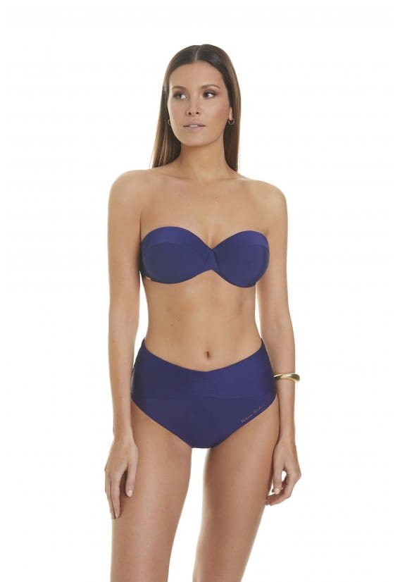 Ta góra od bikini bandeau z fiszbinami i usztywnianymi miseczkami, a także odpinanymi ramiączkami, to prosty i ponadczasowy wzór, który dzięki połączeniu materiałów podkreśla naturalne kształty kobiet.